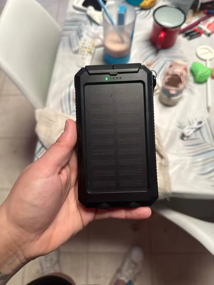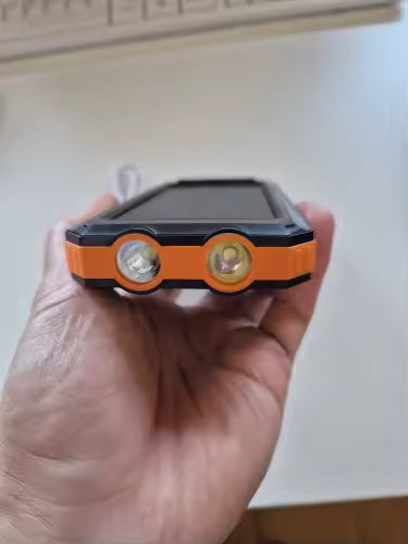 Het unieke aan deze powerbank? Je kunt hem niet alleen opladen via USB-C of Micro-USB, maar ook via het ingebouwde zonnepaneel. Ideaal in noodsituaties of wanneer je geen stopcontact in de buurt hebt.